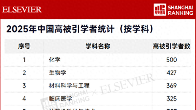 研究论文被广泛援引,体现学者成果在学术界甚至产业界的认可度。旗下出版《柳叶刀》《细胞》等2800多种学术期刊的爱思唯尔(Elsevier),1月30日发布2025“中国高被引学者”(HighlyCitedChineseResearchers)榜单。这份榜单基于爱思唯尔旗下全球权威的引文与索引数据库Scopus,并采用软科开发的方法,系统性呈现中国学者在不同学科领域内的科研贡献与创新价值。